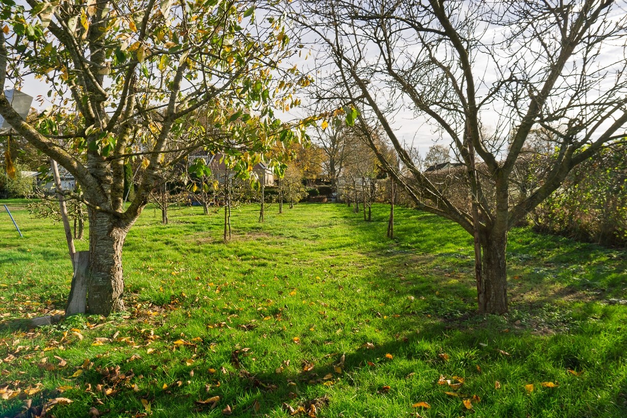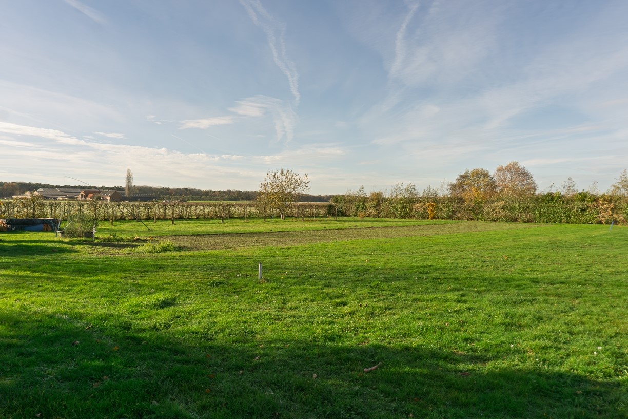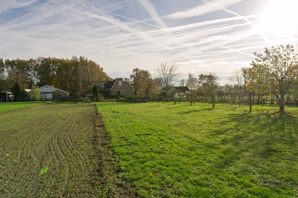 De achtertuin bestaat uit bestrating, plantenborders en een vijverpartij. Hierachter ligt de grote wei. In een deel van de wei staan fruitbomen. Het overige deel is weidegras. De wei wordt voornamelijk omheind door een haag en is onder andere geschikt om er bijvoorbeeld paarden en/of kleinvee te houden. Maar de wei leent zich ook om bijvoorbeeld een eigen moestuin of een zwembad aan te leggen. De wei kan naar eigen wens en inzicht worden aangelegd/gebruikt rekening houdend met het vigerende bestemmingsplan. Er is een beregeningsinstallatie aanwezig met bronpomp. In de hele wei zijn de leidingen en aansluitpunten van de beregeningsinstallatie in de grond verwerkt.