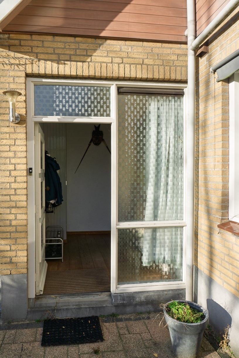 De entree van de woning ligt aan de voorzijde. De hal geeft toegang tot de woonkamer en de woonkeuken. Ook de trapopgang naar de 1e verdieping bevindt zich in de hal.