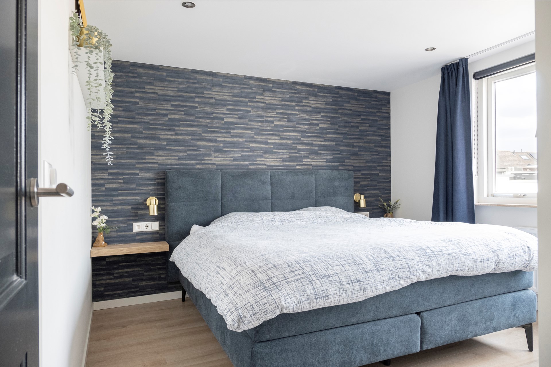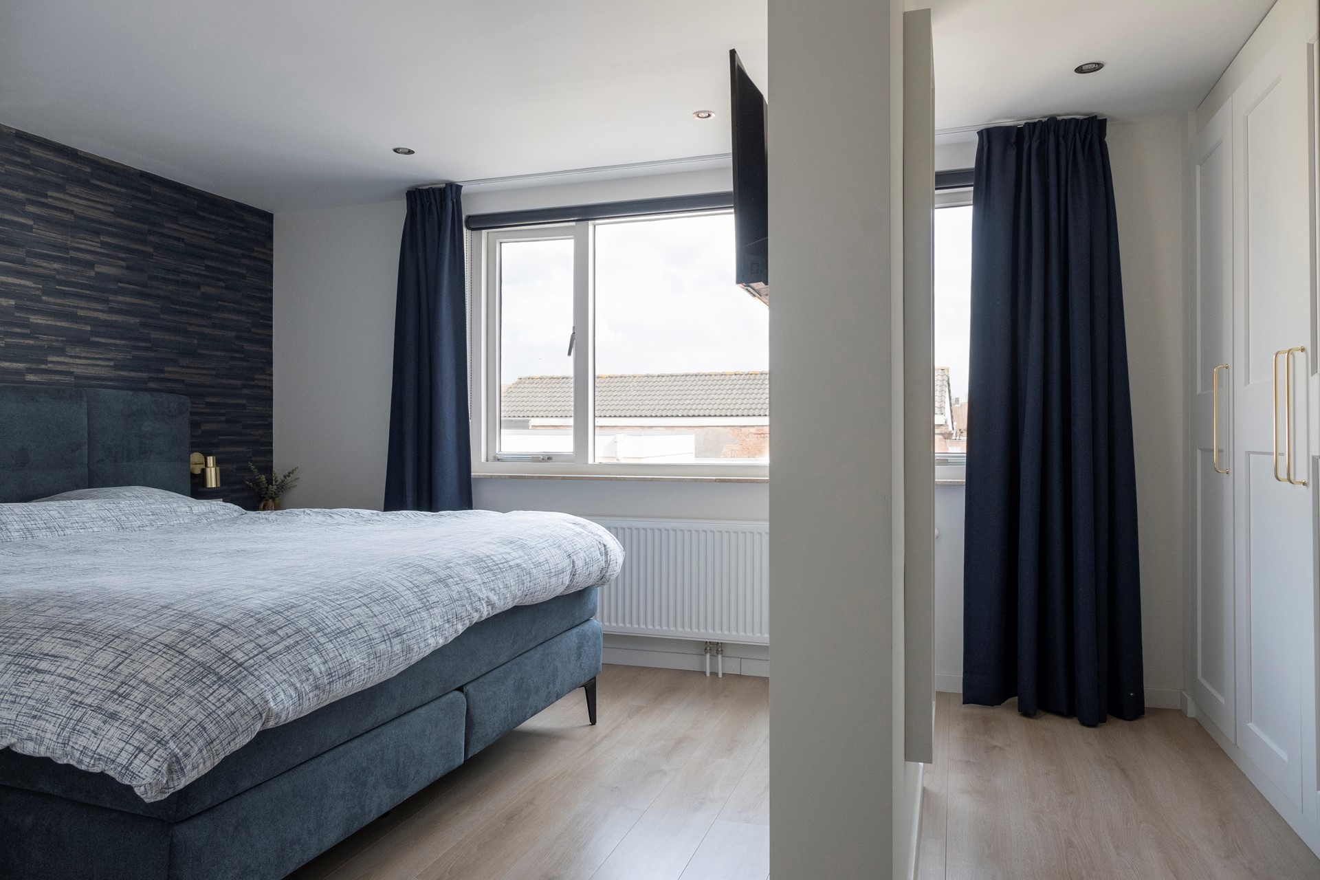 Deze royale slaapkamer bevindt zich aan de aan de achterzijde van de woning en kijkt via het raam uit op de achtertuin en de achtergelegen bebouwing. De kamer geeft ruimte aan een 2-persoonsbed en kledingkast. De afwerking bestaat uit strak gestucte wanden en plafond en laminaat op de vloer.