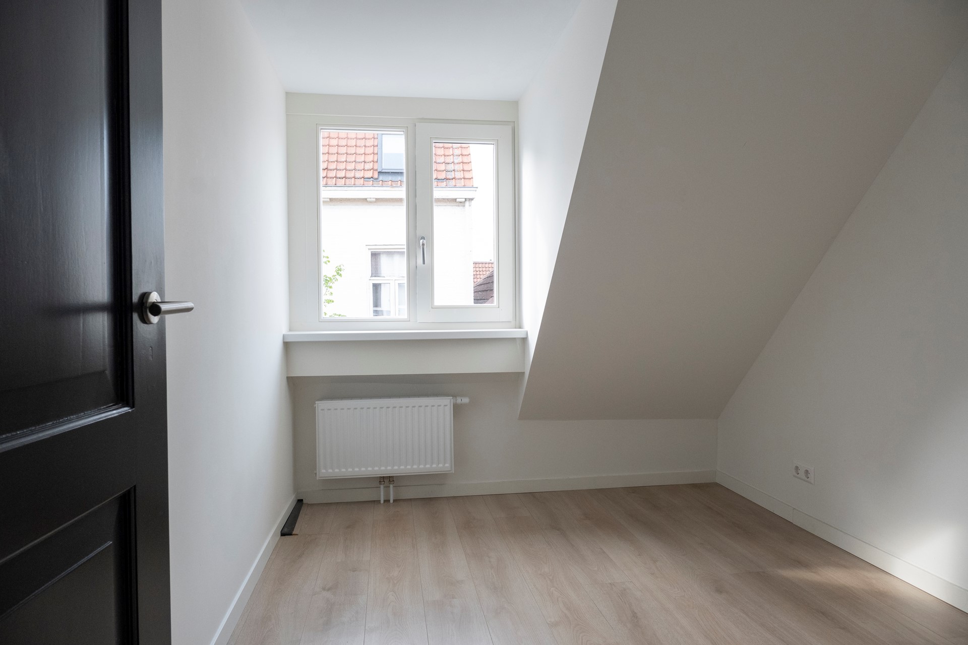 Deze slaapkamer is aan de voorzijde van de woning gelegen en beschikt voer een dakkapel. De slaapkamer biedt plaats aan een 1-persoonsbed en bureau of kledingkast. De afwerking is gelijk aan de afwerking van slaapkamer 1