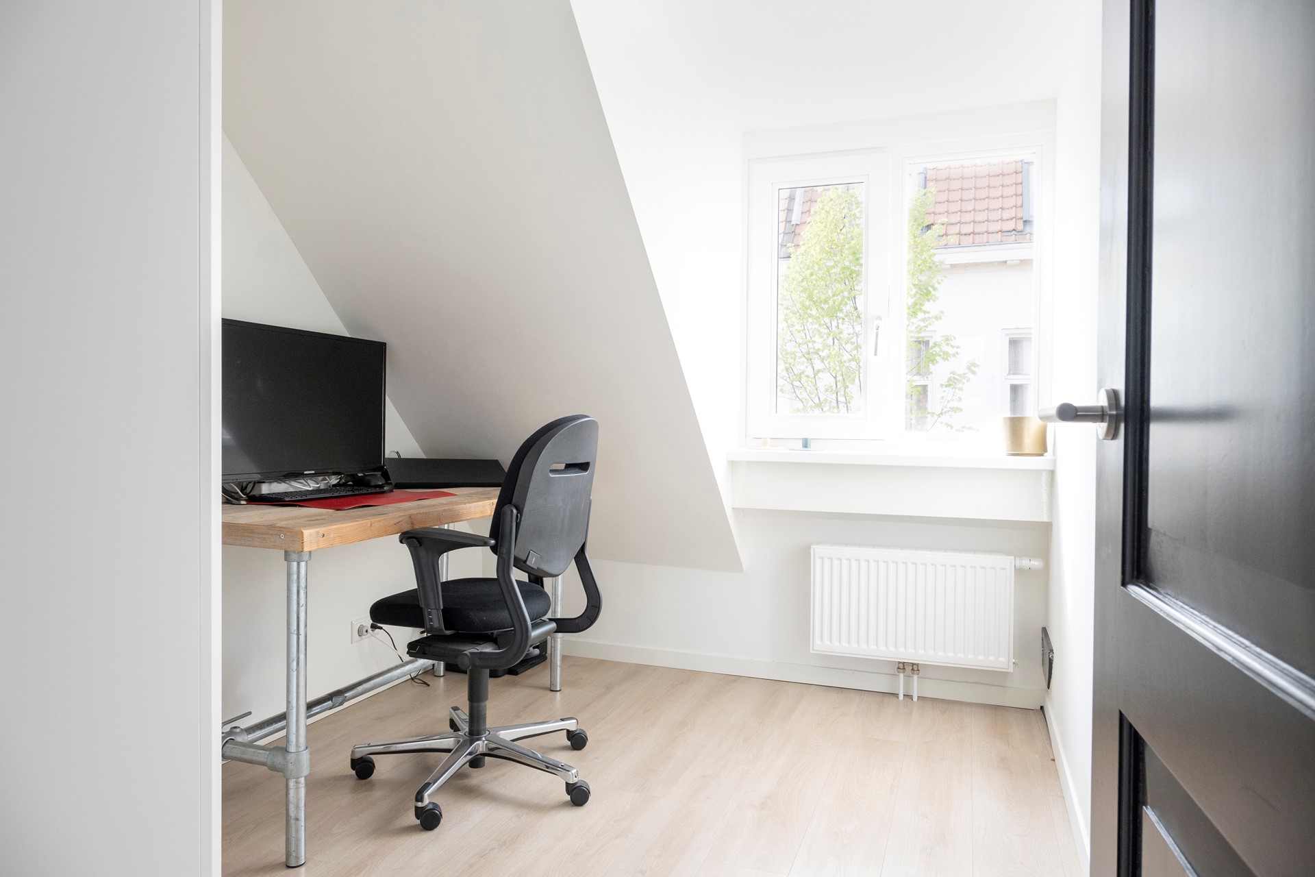 Deze slaapkamer is naast slaapkamer 2 aan de voorzijde van de woning gelegen en beschikt eveneens over een dakkapel. Ook hier kan een 1-persoonsbed worden geplaatst met een bureau of kledingkast. De afwerking is gelijk aan die van slaapkamer 1 en 2.