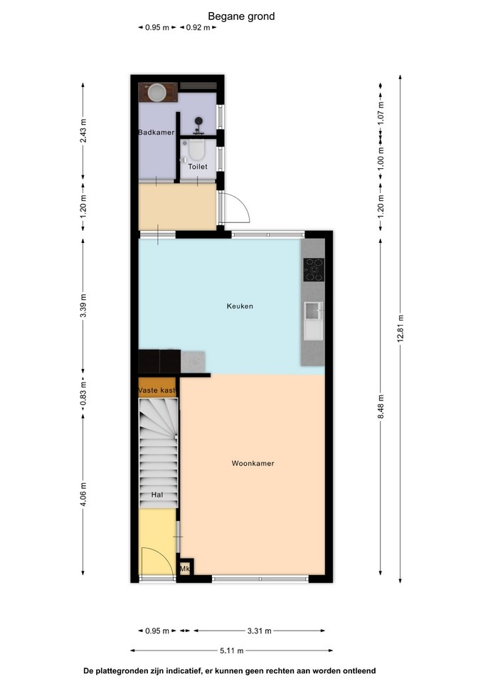 Vanuit de Koepeldwarsstraat kom je de woning binnen in de hal van de woning. In de hal bevinden zich de garderobe en de trapopgang naar de 1e verdieping. De hal geeft toegang tot de woonkamer.