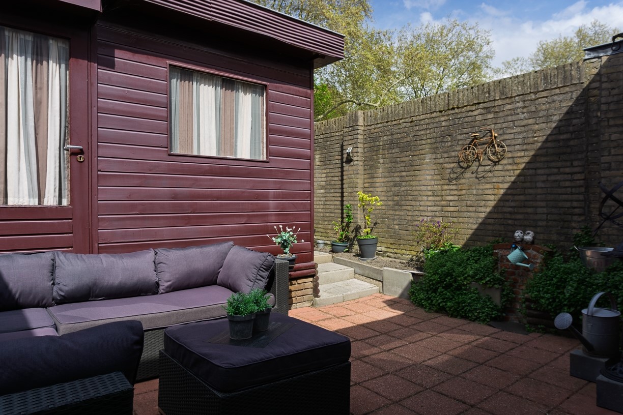 De gezellige tuin wordt betreden vanuit de woonkamer en is voornamelijk bestraat met aan de zijkant verhoogde plantenborders. De tuin heeft een achterom wat uitkomt op de parkeerplaats van het Mineurplein. Achter in de tuin staat een houten tuinberging die de mogelijkheid biedt om de fietsen te stallen en/of tuinspullen op te bergen.