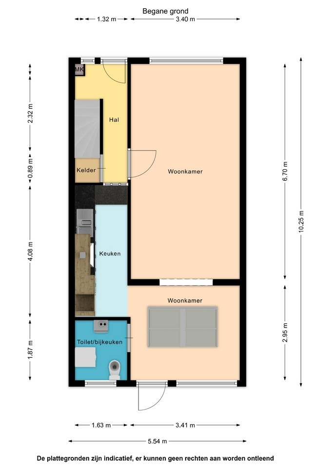 Vanaf de Moeregrebstraat stap je de woning binnen in de hal waar zich een verdiepte bergkast bevindt, de trapopgang naar de 1e verdieping en de meterkast. De meterkast beschikt over 5 groepen en 1 aardlekschakelaar.