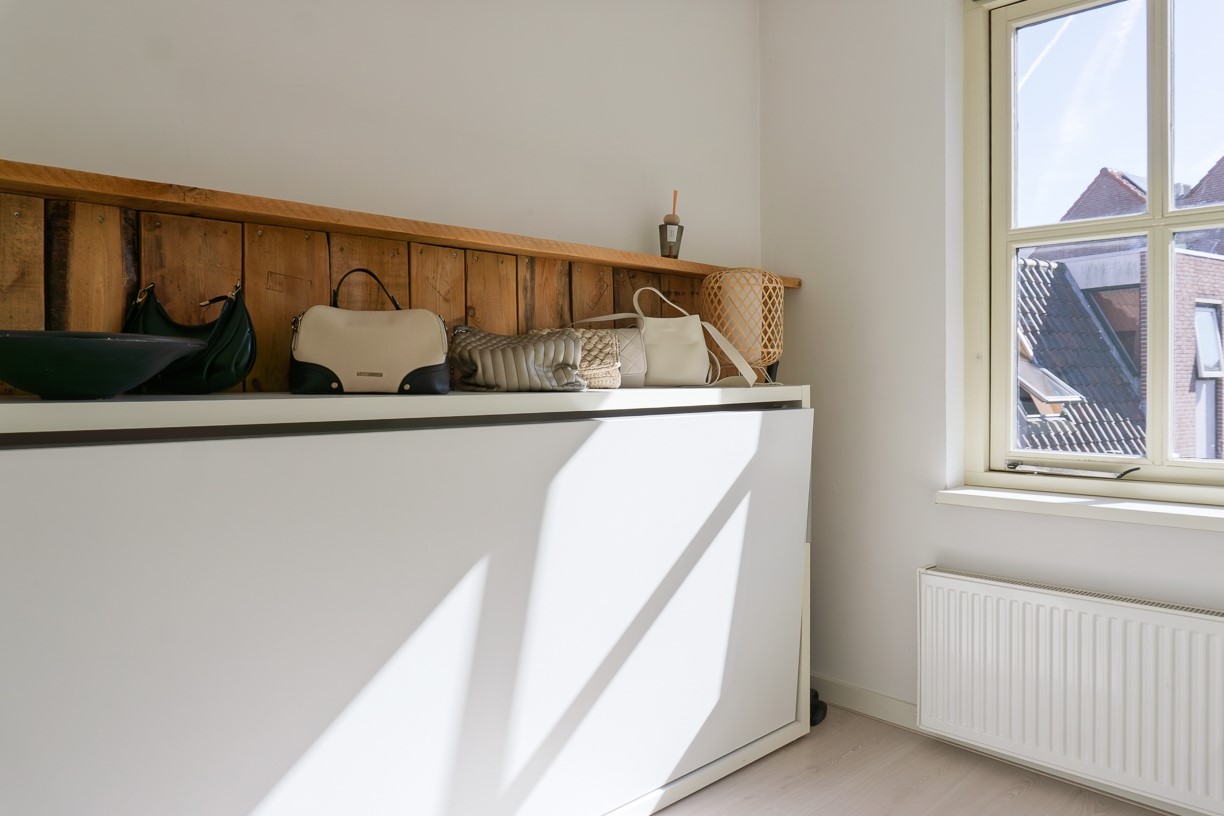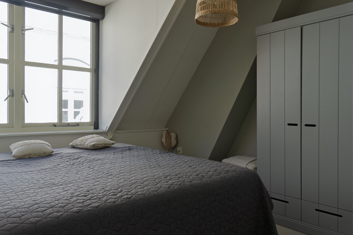 Deze slaapkamer ligt aan de achterzijde van de woning en door het raam kijk je op de Peperbus. De afwerking van deze slaapkamer is gelijk aan die van slaapkamer 1.