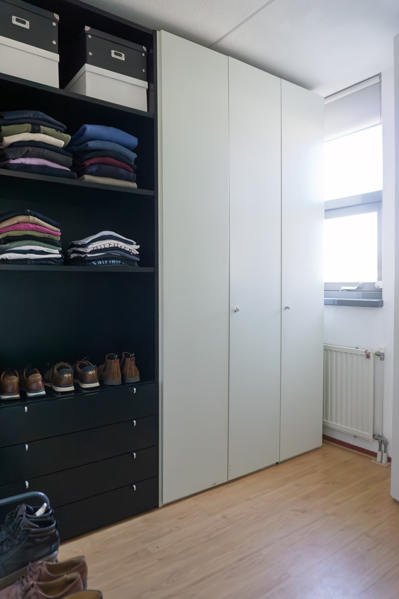 Aan de andere zijde van de overloop ligt aan de achterzijde van de woning deze slaapkamer. De kamer is nu in gebruik als kastenkamer. De afwerking is gelijk aan de afwerking van slaapkamer 1 en 2.