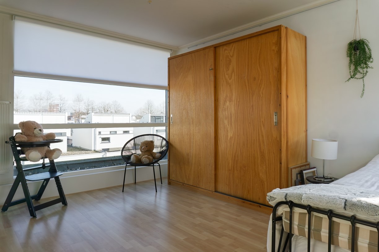 Deze kamer ligt aan de andere zijde van de trap en beschikt eveneens over grote ramen. Ook in deze kamer bevindt zich een vaste inbouwkast. De afwerking is gelijk aan de afwerking van slaapkamer 4.