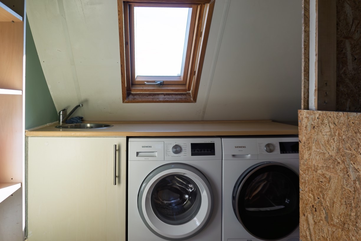 De vaste trapopgang op de overloop van de 1e verdieping komt uit op de voorzolder van de zolderverdieping. In het plafond van de voorzolder is een luik aanwezig wat met behulp van een vlizotrap toegang geeft tot de bovengelegen bergruimte/vliering. De zolderverdieping beschikt over een ruime slaapkamer en een ‘technische ruimte’ waar de aansluitingen aanwezig zijn voor de wasmachine en de wasdroger en waar tevens de cv-ketel hangt. Dit betreft een Remeha Avanta Ace CW4 van het bouwjaar 2024. Voor de lichtinval zorgt een dakvenster.