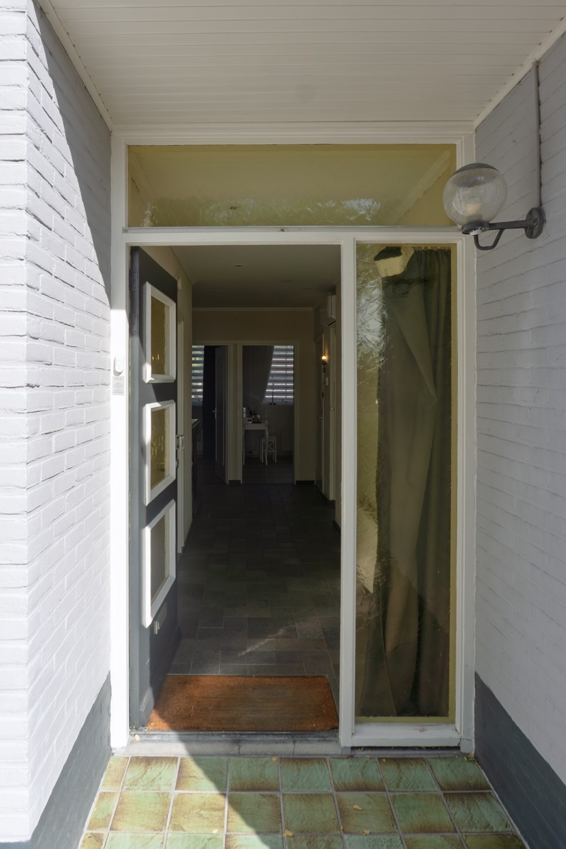 De voortuin is fraai aangelegd met planten en heesters en netjes onderhouden. Ook hier als opvallend detail een palmboom. Aan de zijkant van de woning ligt de oprit die plaats biedt aan 1 auto.